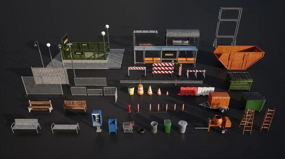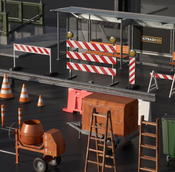 Kitbash3D-PROPS StreetSide城市交通道路警示路灯