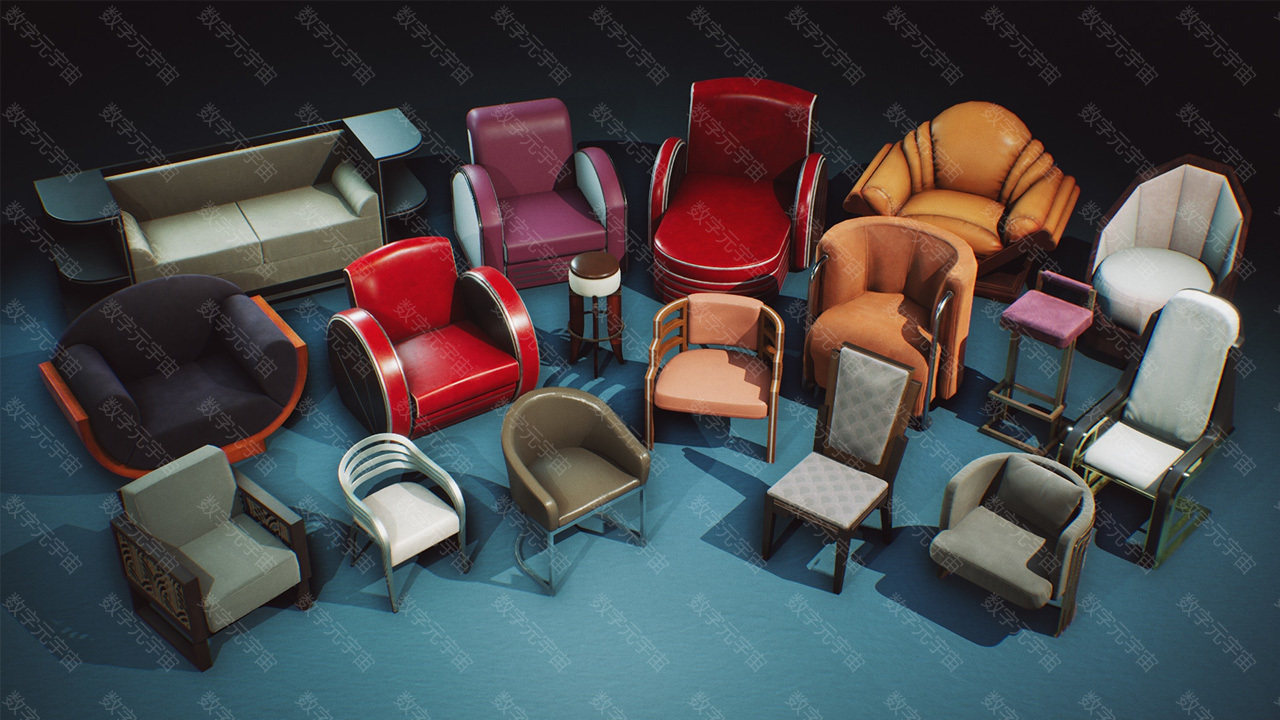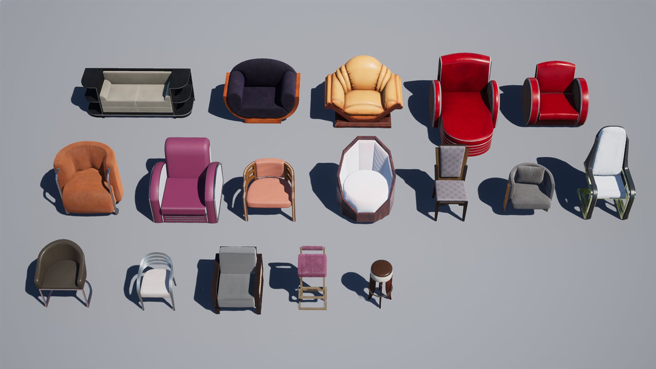 Art Deco Furniture and Props VOL.1 沙发椅子凳子资源包