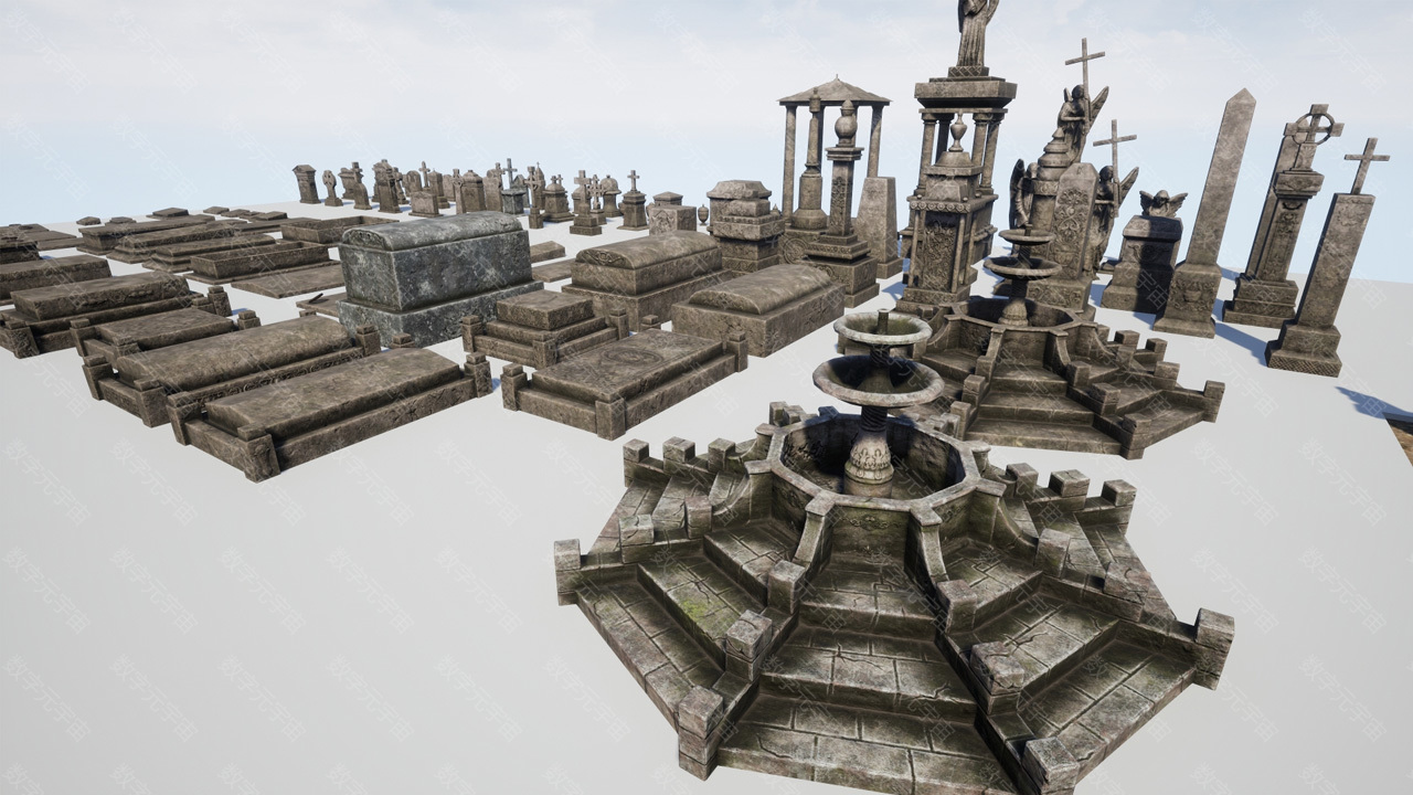 Cemetery Props墓地碑十字架雕像道具模型资源包