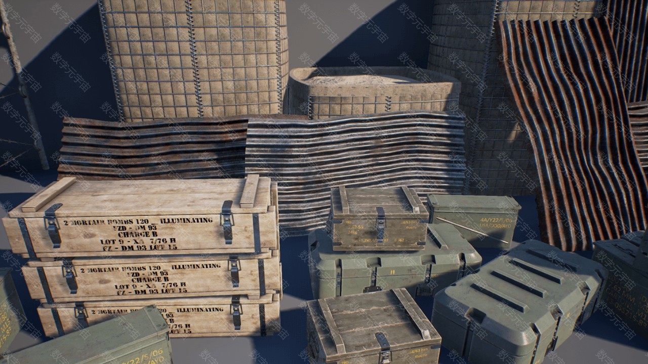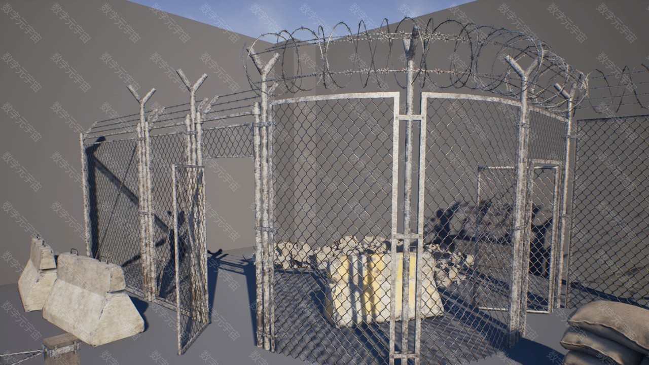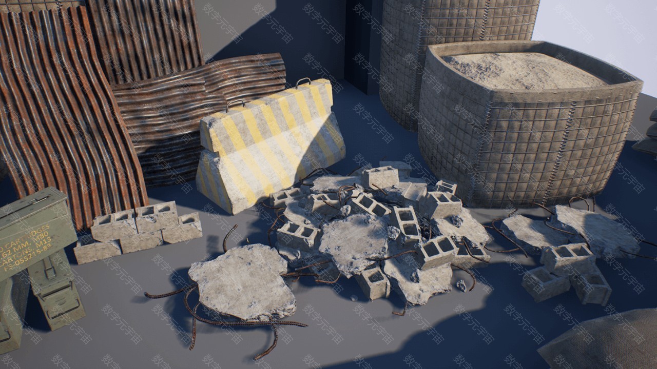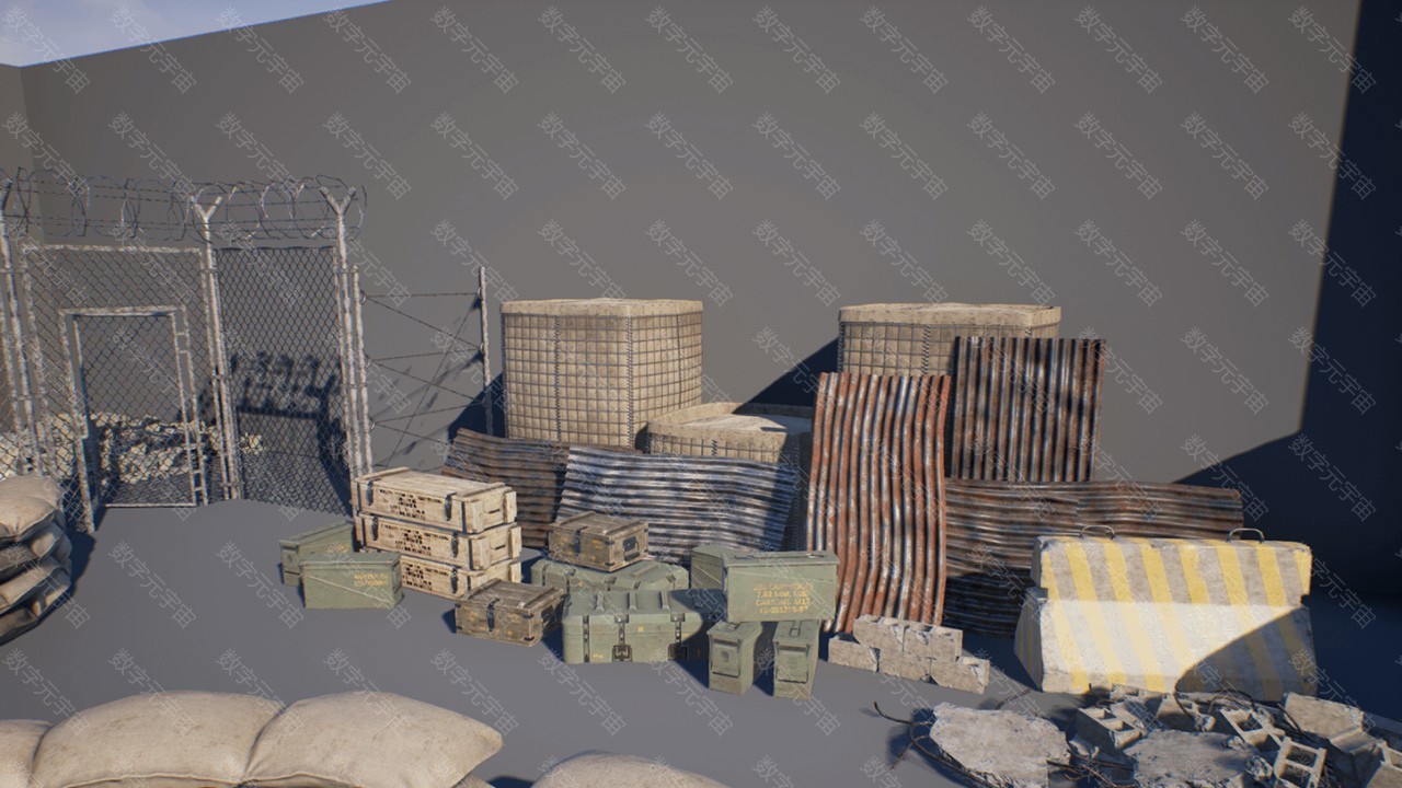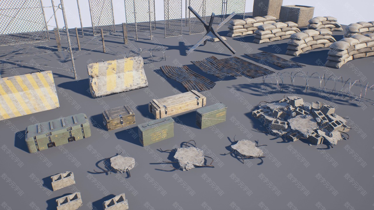 Military_Props_Pack军事防洪沙袋围栏路障障碍素材