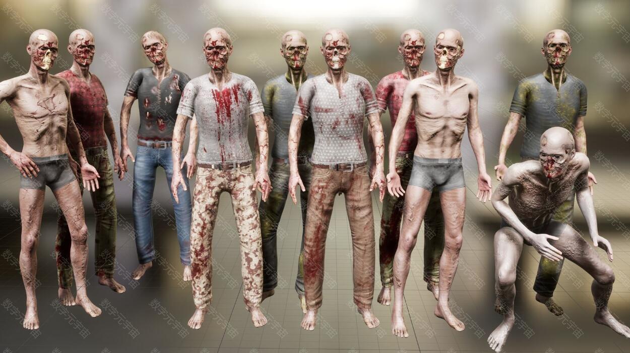 Zombie 02 pack Low-poly 3D model丧尸